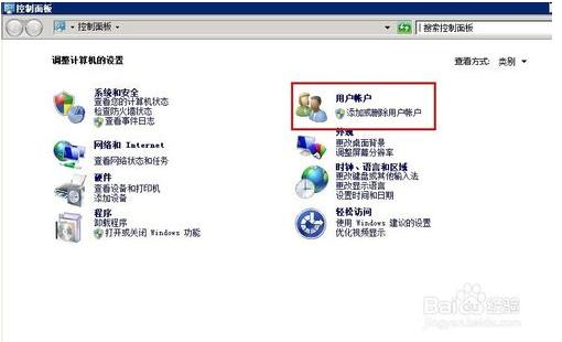 5.打開(kāi)控制面板之后,找到用戶賬號(hào)。